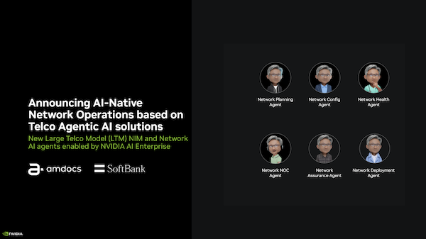 英偉達的合作伙伴在本次GTC大會上展示了專門為電信行業定制的多模態大語言模型LTM(Large Telco Model),能夠作為網絡AI智能體的核心組成部分,自動化復雜的決策流程、提高運營效率與員工效率,并增強網絡性能。該模型利用NVIDIA AI Enterprise軟件平臺中的NVIDIA NIM和NeMo微服務,推動新一代AI在網絡運營中的應用。