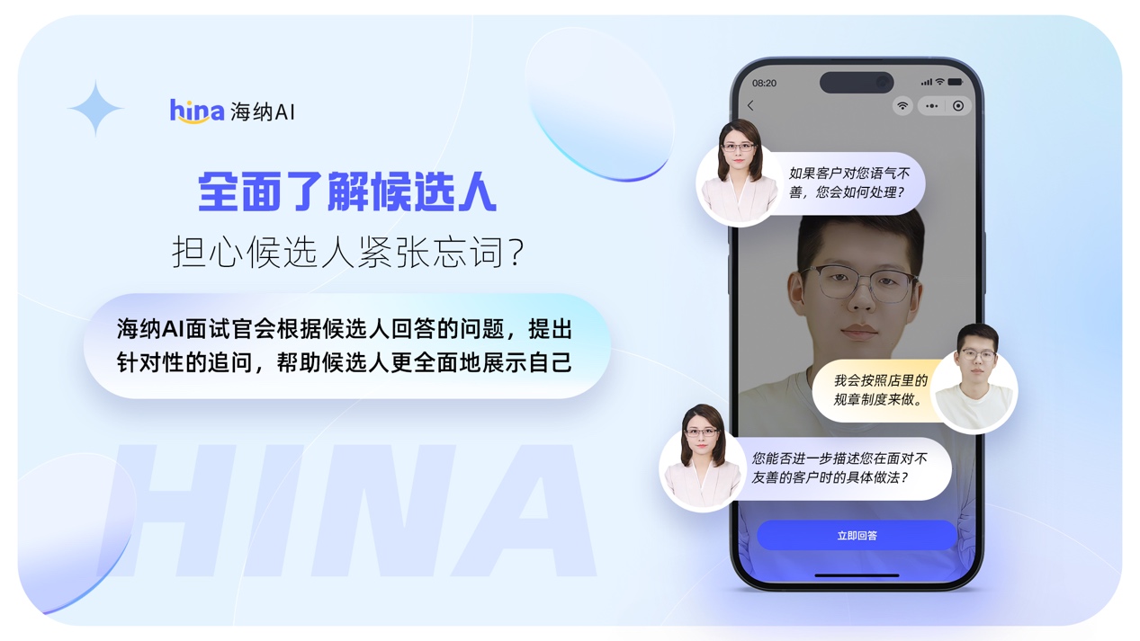 近期海納AI正式上線新版海納AI面試官,融合最新AI大模型能力,持續迭代如千人千問、智能追問等功能,優化了如肢體檢測、背景調查、心理測評、防作弊等AI面試關鍵能力的性能,全新的使用體驗也更貼合企業用戶的實際需求。