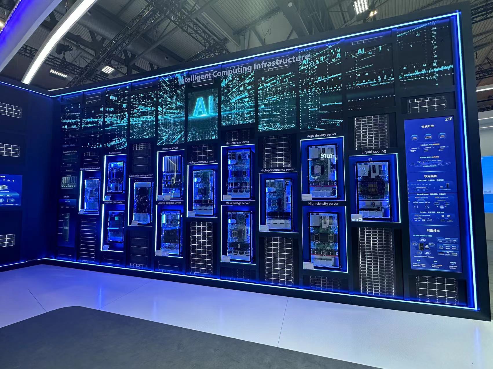 在 MWC上,不少企業(yè)展示了算力基礎(chǔ)設(shè)施的方案。中興通訊將智能計(jì)算定位為長(zhǎng)期主航道,會(huì)上展出了涵蓋液冷IDC、智算服務(wù)器、通算服務(wù)器,存儲(chǔ)、高速交換及訓(xùn)推一體機(jī)的的智算基礎(chǔ)設(shè)施。