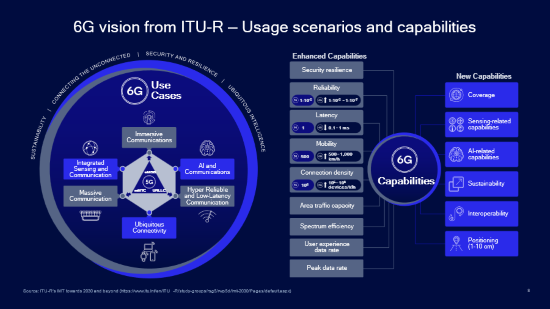 從這頁幻燈片可以看到,在ITU-R設(shè)定的6G愿景中,AI和通信、通信感知一體化和泛在連接是其中三大應(yīng)用場景。在這三大應(yīng)用場景中,AI將對6G產(chǎn)生巨大的影響。當(dāng)前,行業(yè)也正圍繞6G進(jìn)行規(guī)劃。就在幾周前,3GPP在韓國仁川舉辦了6G國際標(biāo)準(zhǔn)研討會,標(biāo)志著3GPP正式開始6G標(biāo)準(zhǔn)化相關(guān)工作。