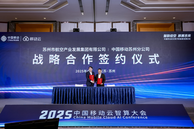 論壇期間,蘇州市航空產業發展集團有限公司與蘇州移動簽署戰略合作協議。根據協議,雙方將圍繞5G-A低空智聯網、智算中心、無人機應用等領域深化合作,持續加大基礎設施投資力度,共同推動蘇州低空經濟高質量發展。