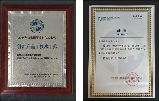 前不久,在第九屆全國石油和化工電氣技術大會上,維諦技術(Vertiv)旗下的Vertiv™ Liebert® Industry S 系列工業UPS,憑借卓越性能和出色的工業適應性,榮獲“2024年度全國石油和化工電氣創新產品(技術)”大獎。