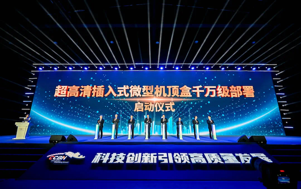 開幕式上的超高清插入式微型機(jī)頂盒千萬級(jí)部署啟動(dòng)儀式,為用戶超高清的交互體驗(yàn)帶來了質(zhì)的飛躍。以往厚笨的機(jī)頂盒如今變身為一個(gè)小小的電視棒,可直接插入電視后部的HDMI接口,不占用更多家居空間。遙控器也具備了合二為一的能力,無需用戶在電視與機(jī)頂盒兩個(gè)設(shè)備的遙控器間來回切換。