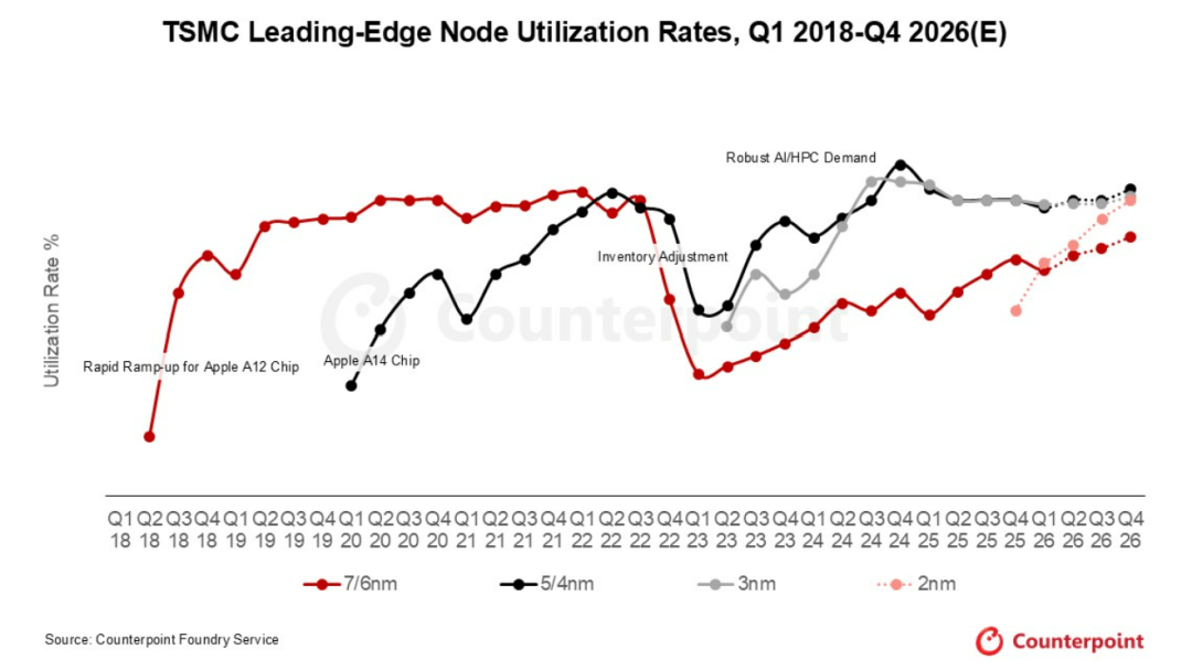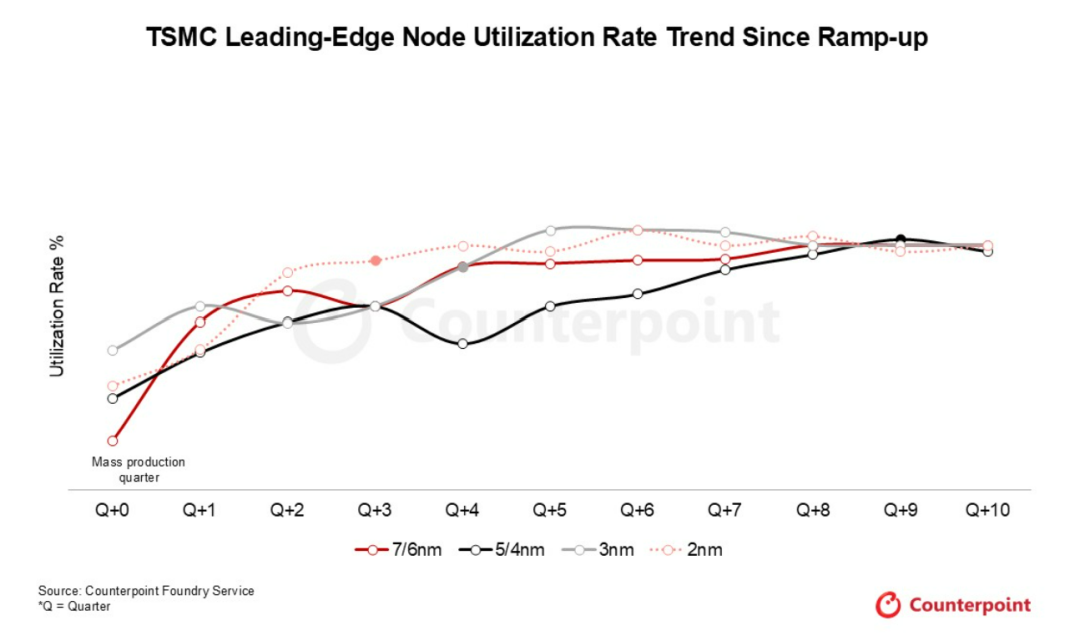 Counterpoint:臺(tái)積電先進(jìn)制程產(chǎn)能利用率持續(xù)保持強(qiáng)勁,2nm 將刷新商業(yè)化紀(jì)錄