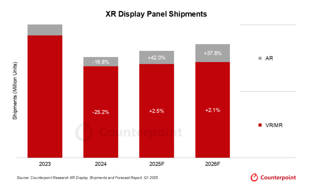 Counterpoint:2025 年全球 XR 顯示器出貨量預計增長 6%,其中 AR 眼鏡將增長 42%
