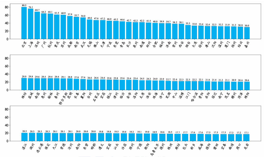 圖:全國100個主要城市工業(yè)互聯(lián)網(wǎng)發(fā)展指數(shù)情況