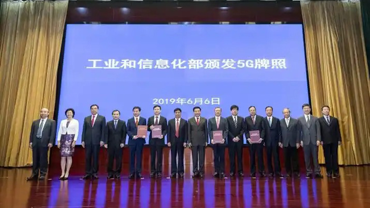 2019年6月6日,北京工信部大樓內(nèi),時任中國電信董事長柯瑞文、中國移動董事長楊杰、中國聯(lián)通董事長王曉初、中國廣電董事長趙景春四人接過了時任工信部部長苗圩頒發(fā)的5G商用牌照。這張“第五代數(shù)字蜂窩移動通信業(yè)務(wù)”許可,直接宣告中國正式跨入5G商用時代。