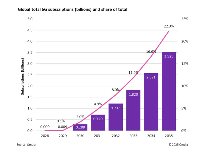 Omdia:預(yù)計到 2030 年全球 6G 用戶數(shù)將達(dá) 2.89 億