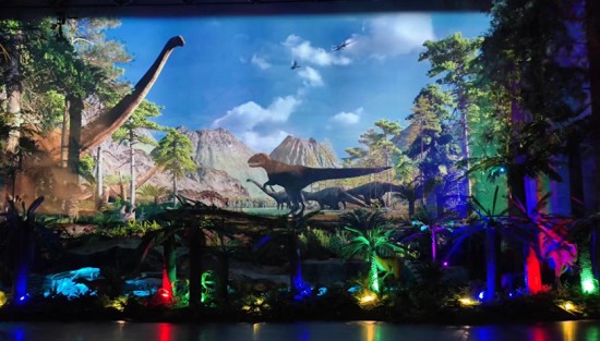 白堊紀(jì)恐龍投影區(qū)通過六臺科視ChristieDWU880-GS投影機(jī)構(gòu)建全景動態(tài)場景