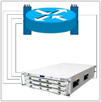 4. 將性能測(cè)試儀的端口分別與被測(cè)設(shè)備的板卡A和B相連。