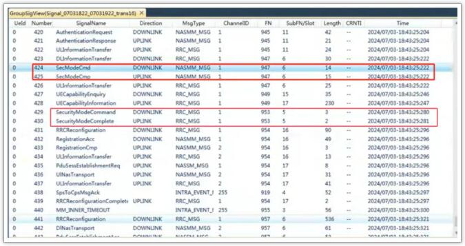 ■ 計算兩條RRC信令的時間差,接入層安全建立時間等于1ms。