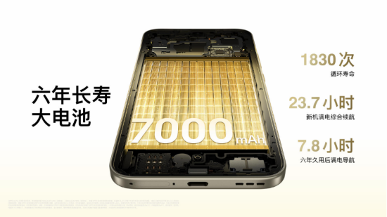 續航方面,A6 Pro 搭載 OPPO 最大的 7000mAh 大電池,輕松實現“一充用一天”,配合 80W 超級閃充,可快速補足電量,覆蓋用戶從早到晚的重度使用場景,徹底告別電量焦慮。擁有 1830 次超長壽循環壽命,六年長壽,刷新耐用新記錄。