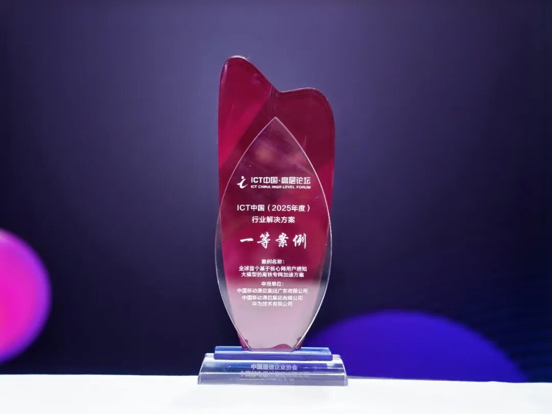 中國移動集團與廣東移動聯(lián)合華為打造首個高鐵專網(wǎng)加速方案榮獲“ICT中國(2025年度)” 一等獎