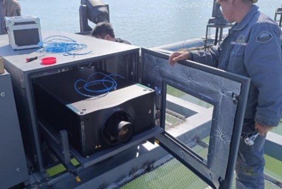 作為本次水幕秀投影系統的集成商,北京中清未來科技在Crimson WU32投影機的規劃、安裝和調試過程中發揮了關鍵作用。這些安裝在湖心浮排上的投影機面臨著大量水霧和濕氣的挑戰。為此,項目團隊為其定制了配備恒溫與冷卻系統的防水外殼,有效調節內部溫濕度,使其免受環境侵蝕,確保在各種天氣條件下穩定運行。